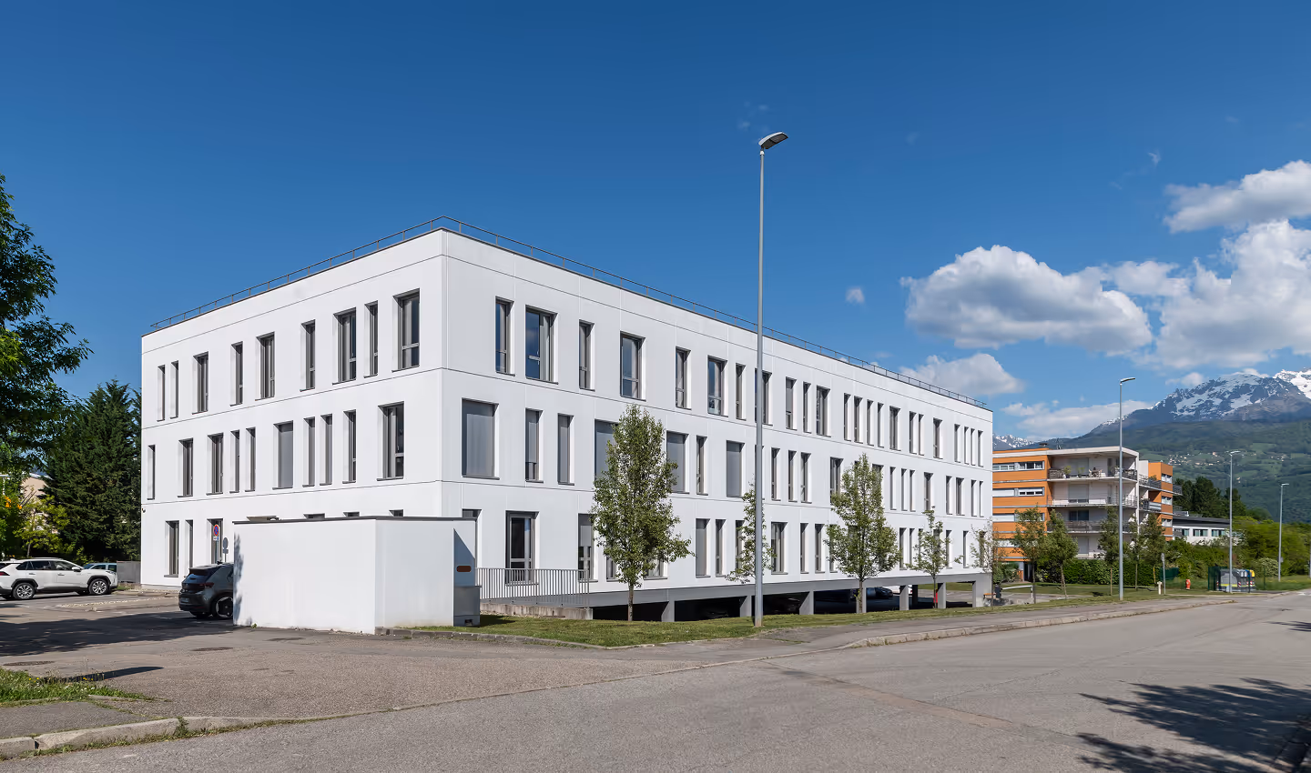 À la volumétrie volontairement simple et épurée, Belledonne développe 2 400 m² de bureaux divisibles à partir de 250 m².