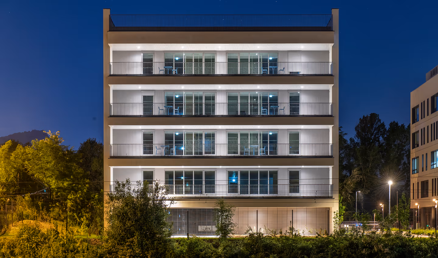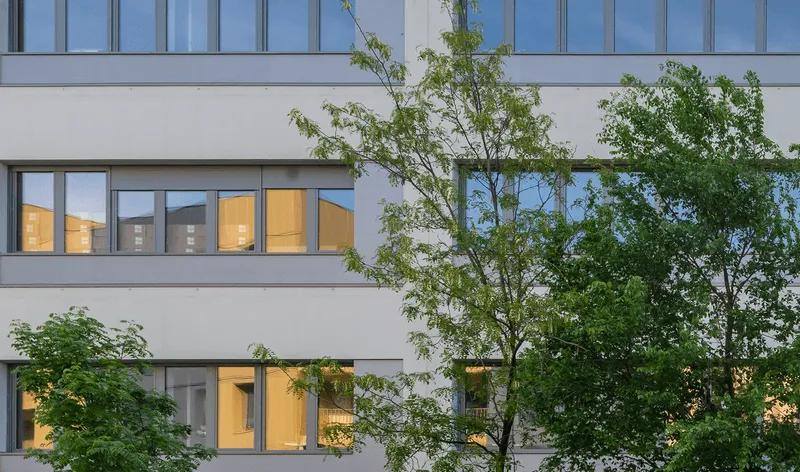 Les façades exposées sont équipées de stores extérieurs, qui contrairement aux occultations intérieures, ont un effet thermique en contrant, lorsque cela est nécessaire, les apports solaires avant qu’ils n’entrent à l’intérieur du bâtiment.